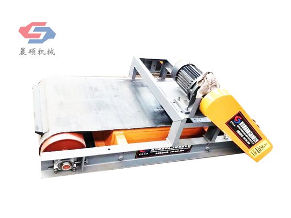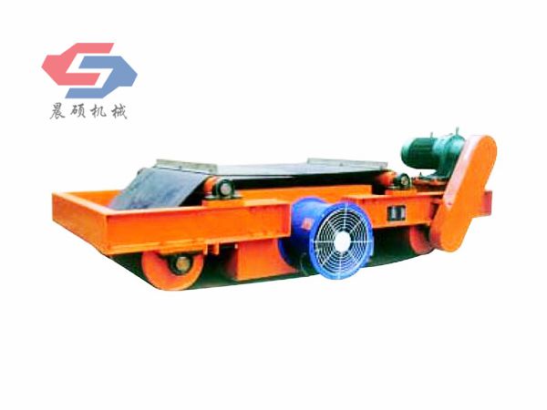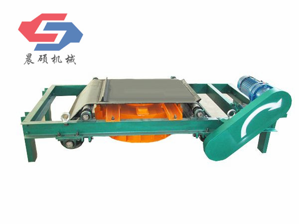 电磁除铁器的基础上增加了驱动电机、滚筒、带刮板的缷铁胶带等组成的缷铁机构。在工作过程